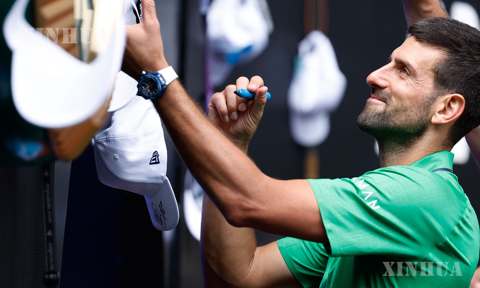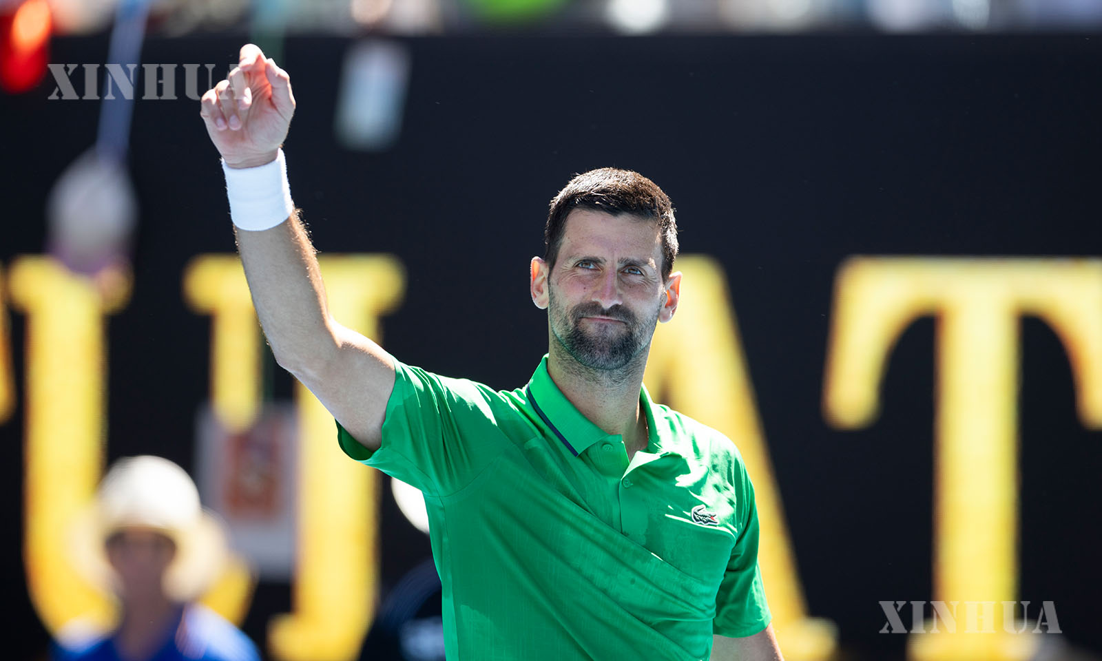 ဩစတြေးလျနိုင်ငံ မဲလ်ဘုန်းမြို့တွင် ၂၀၂၆ ခုနှစ် ဇန်နဝါရီ ၂၈ ရက်က အီတလီတင်းနစ်ကစားသမား လော်ရန်ဇို မူဆက်တီနှင့် ယှဉ်ပြိုင်ခဲ့သည့် ဩစတြေးလျအိုးပင်း တင်းနစ်ပြိုင်ပွဲ အမျိုးသားတစ်ဦးချင်း ကွာတားဖိုင်နယ်ပွဲစဉ်၌ ပရိသတ်များကို နှုတ်ဆက်နေသည့် ဆားဘီးယားတင်းနစ်ကစားသမား နိုဗက် ဂျိုကိုဗစ်အား တွေ့ရစဉ် (ဆင်ဟွာ)