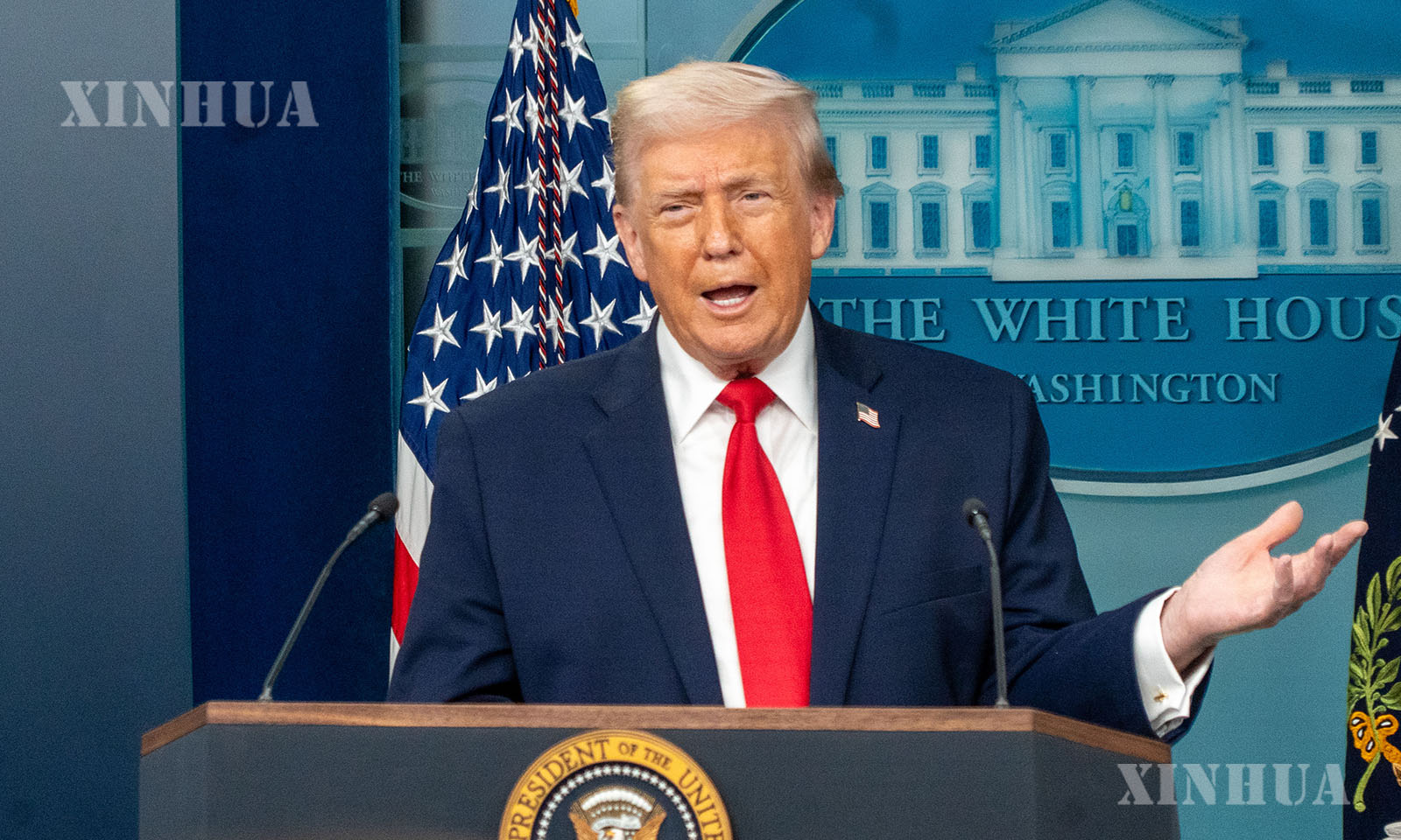 Photo: U.S. President Donald Trump speaks during a press briefing at the White House in Washington, D.C., the United States, on Jan. 20, 2026. (Photo by Li Yuanqing/Xinhua)