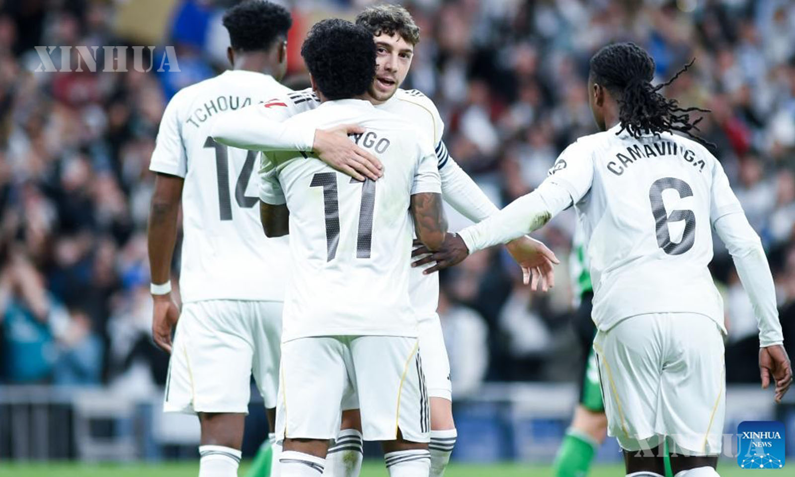 MADRID, Jan. 5 (Xinhua) — Young striker Gonzalo Garcia scored a hat-trick as Real Madrid kept track of FC Barcelona at the top of La Liga with a comfortable 5-1 home win over Real Betis on Sunday.