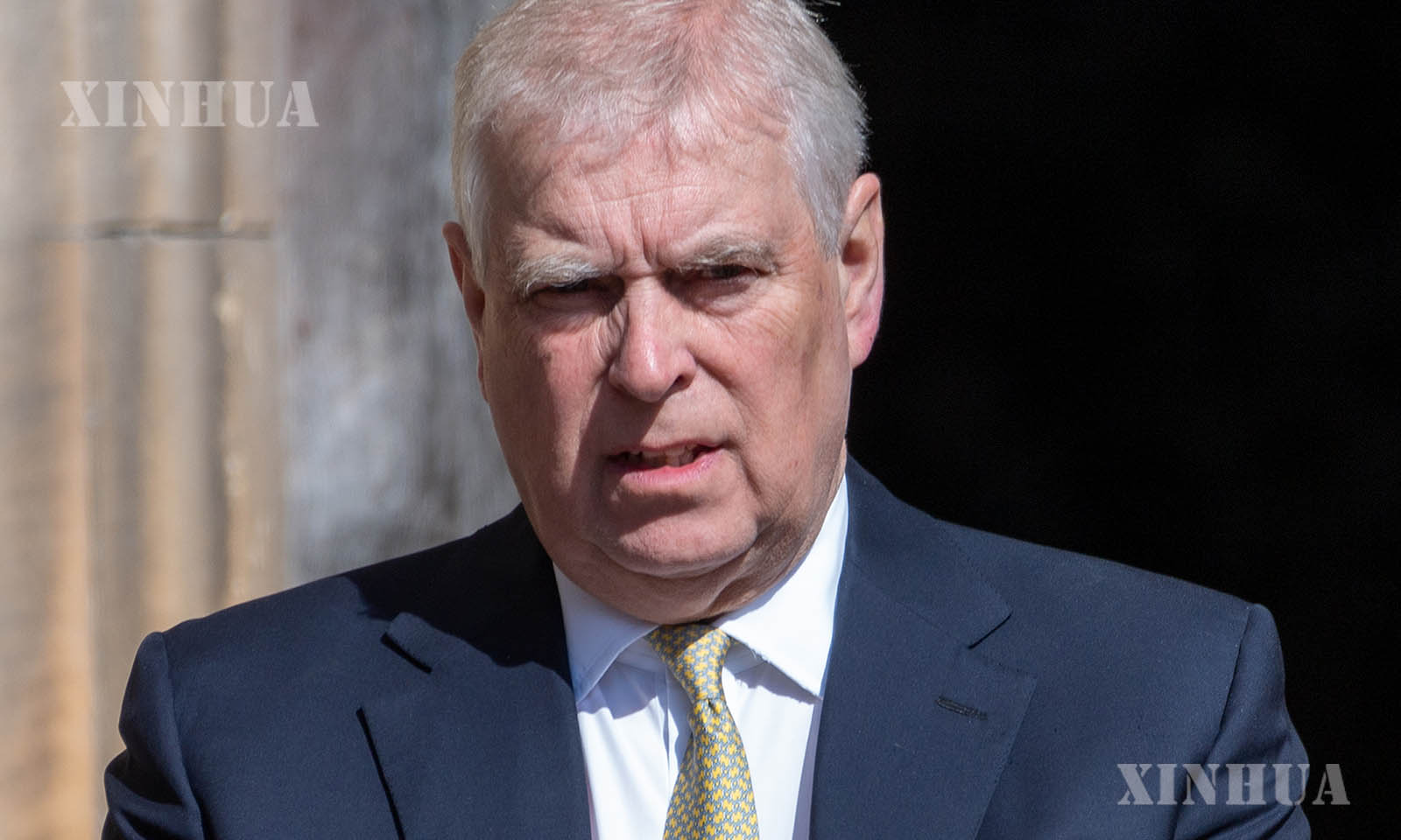 English Caption: This file photo taken on April 20, 2025 shows King Charles’ brother Andrew attending the Easter Service at Windsor Castle in Windsor, Britain. (Xinhua)