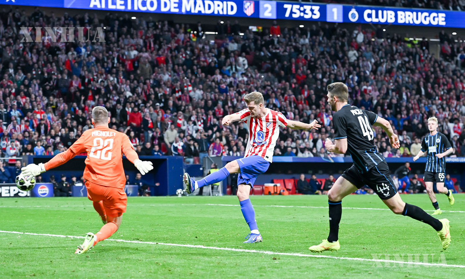 MADRID, Feb. 24 (Xinhua) — Alexander Sorloth was the hero of the night for Atletico Madrid as the powerful striker scored a hat-trick to see his side past a valiant Club Brugge, who, especially in the first half, gave Atletico problems.