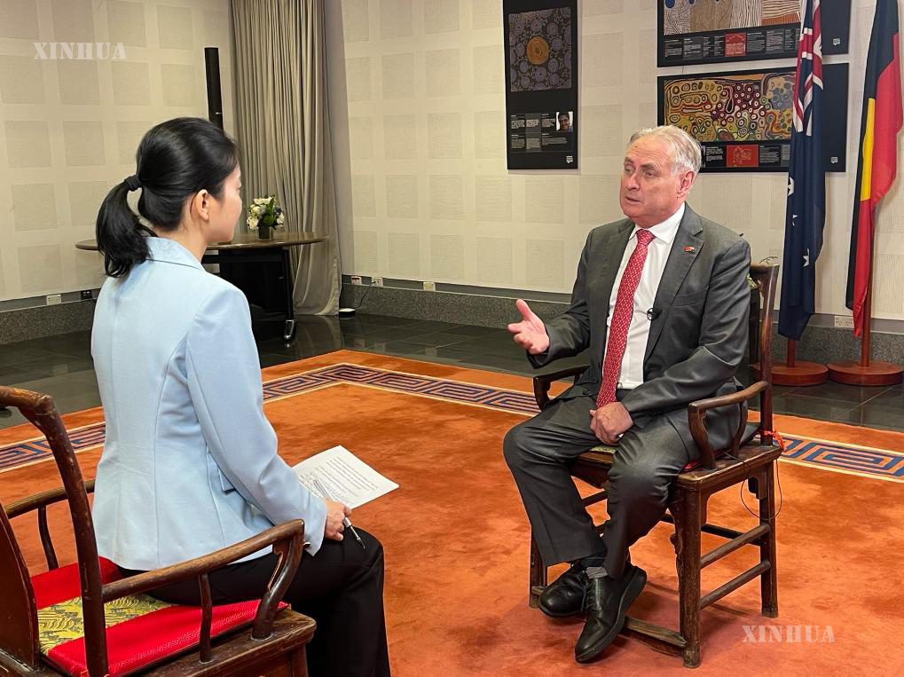 Australian Trade Minister Don Farrell receives an interview with Xinhua at the Australian embassy in China in Beijing, capital of China, May 12, 2023. (Xinhua/Xu Haijing)