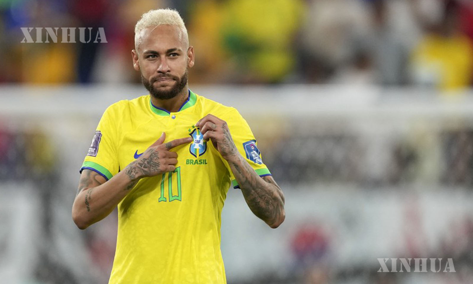 ကာတာနိုင်ငံ ဒိုဟာမြို့ရှိ ရက်စ် အဘူ အာဘော့ (၉၇၄) အားကစားကွင်း၌ ၂၀၂၂ ခုနှစ် ဒီဇင်ဘာ ၅ ရက်က ယှဉ်ပြိုင်ကစားသည့် ဘောလုံးပွဲစဉ်၌ ဘရာဇီးအသင်း ကွာတားဖိုင်နယ်သို့ တက်ရောက်နိုင်ခဲ့ပြီးနောက် ဘရာဇီးကစားသမား နေမာ အောင်ပွဲခံနေစဉ် (ဆင်ဟွာ)