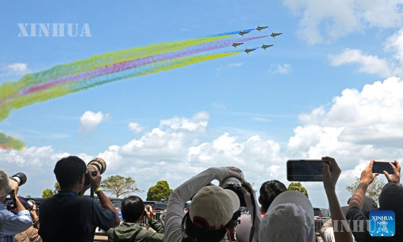 Photo 1 – 9 : Aircraft of the Bayi Aerobatic Team of the Chinese People’s Liberation Army (PLA) Air Force perform during the 10th Singapore Airshow in Singapore, Feb. 3, 2026. (Photo by Then Chih Wey/Xinhua)