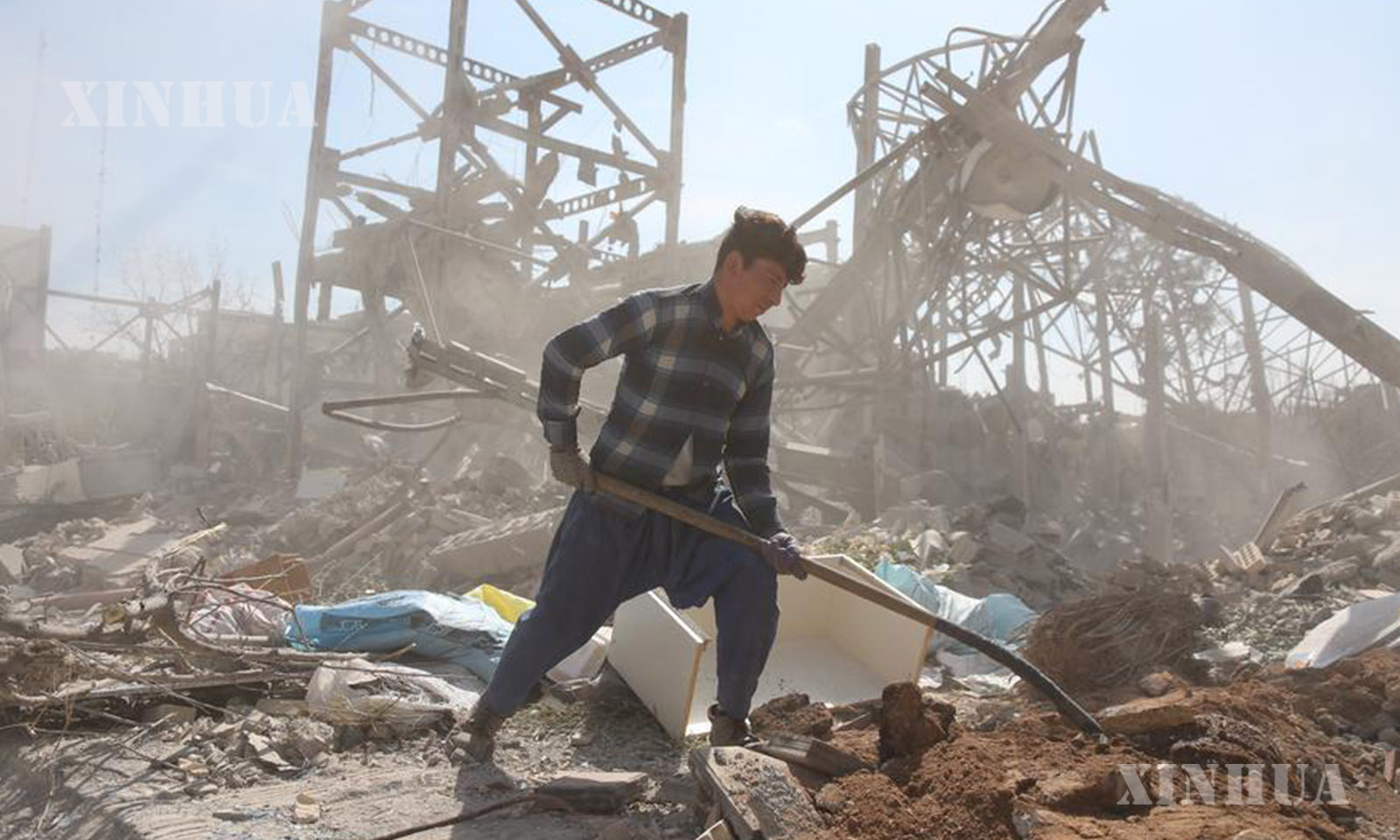 အီရန်နိုင်ငံ မြို့တော်တီဟီရန်တွင် ပျက်စီးသွားသော အဆောက်အအုံ၏ အပျက်အစီးများအား ရှင်းလင်းနေသော ယောက်ျားလေးတစ်ဦးကို ၂၀၂၆ ခုနှစ် မတ် ၄ ရက်က တွေ့ရစဉ် (ဆင်ဟွာ)
