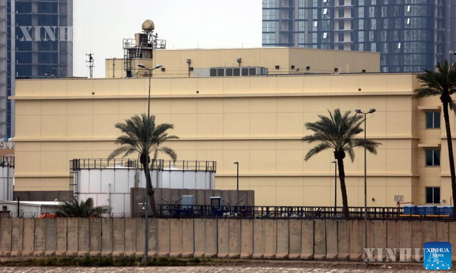 This photo taken on March 14, 2026 shows the U.S. Embassy in Iraq after an attack in Baghdad, Iraq. (Xinhua/Khalil Dawood)