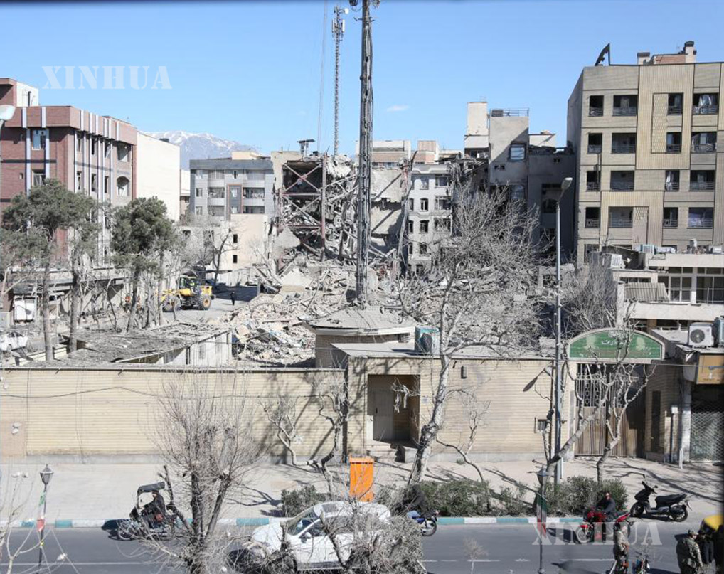 အီရန်နိုင်ငံ မြို့တော်တီဟီရန်တွင် အမေရိကန်နှင့် အစ္စရေးတို့၏ လေကြောင်းတိုက်ခိုက်မှုများကြောင့် ထိခိုက်ပျက်စီးသွားသော အဆောက်အအုံများနှင့် အပျက်အစီးများကို ၂၀၂၅ ခုနှစ် မတ် ၃ ရက်က တွေ့ရစဉ် (ဆင်ဟွာ)
