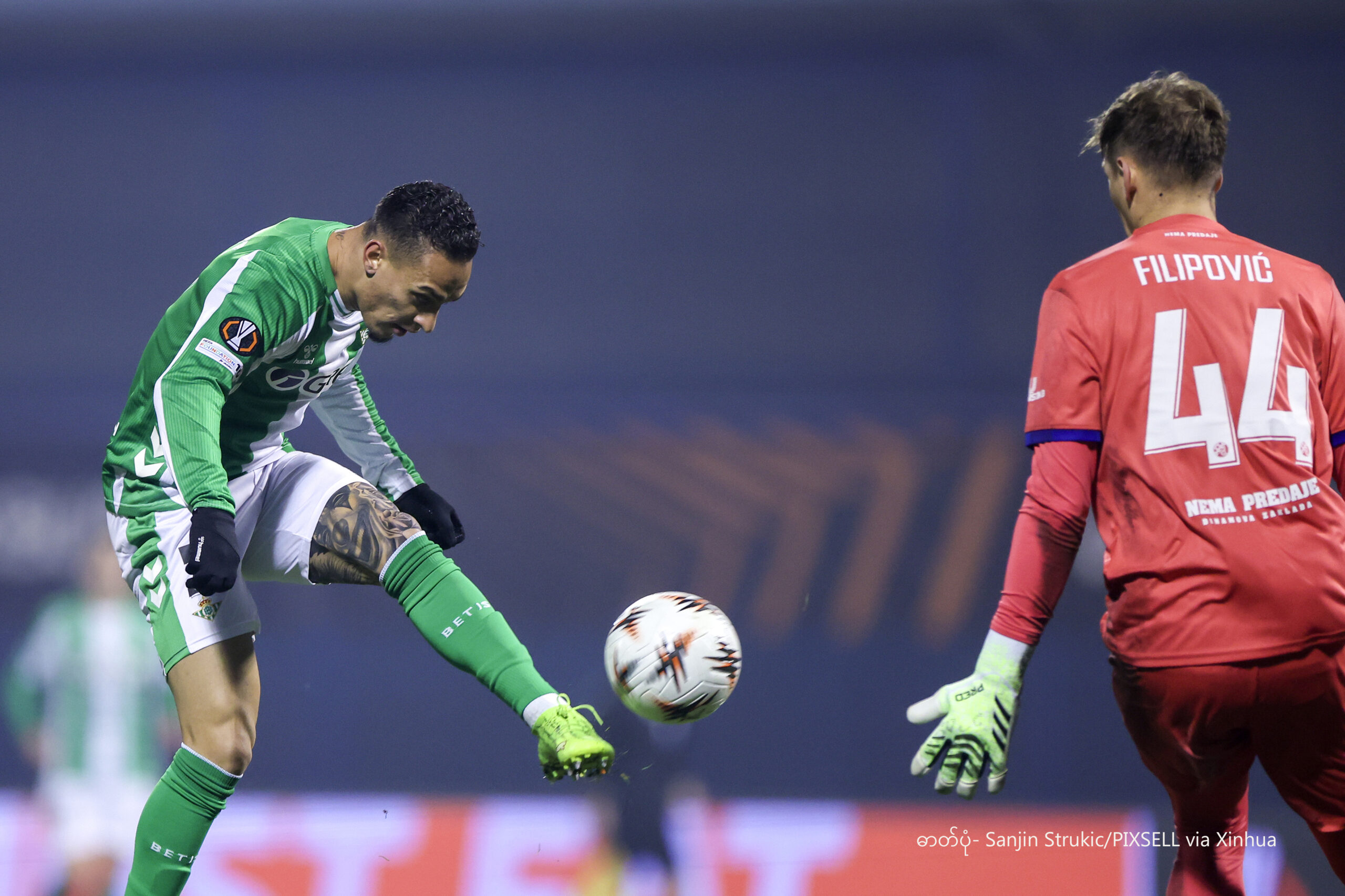 ခရိုအေးရှားနိုင်ငံ ဇာဂရက်ဘ်မြို့တွင် ၂၀၂၅ ခုနှစ် ဒီဇင်ဘာ ၁၁ ရက်က ဂျီအင်န်ကေ ဒီနမိုအသင်းနှင့် ရီးရဲလ်ဘက်တစ်အသင်းတို့ ယှဉ်ပြိုင်ကစားသည့် ၂၀၂၅/၂၀၂၆ ယူအီးအက်ဖ်အေ ယူရိုပါလိဂ်ပြိုင်ပွဲ လိဂ်အဆင့်ပွဲစဉ်၌ ရီးရဲလ်ဘက်တစ်အသင်းမှ အန်တိုနီ ဆန်းတို့စ် (ဝဲ) ဂိုးသွင်းယူနေစဉ် (ဓာတ်ပုံ- Sanjin Strukic/PIXSELL via Xinhua)
