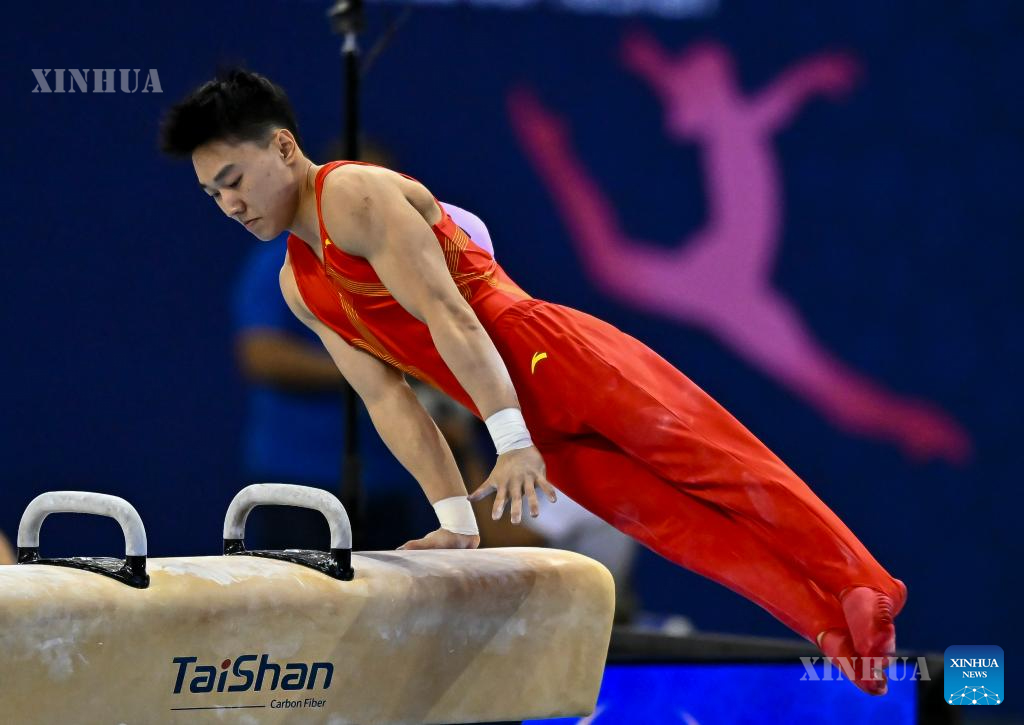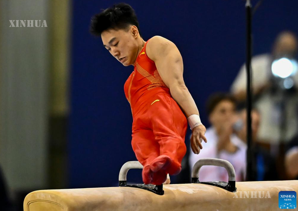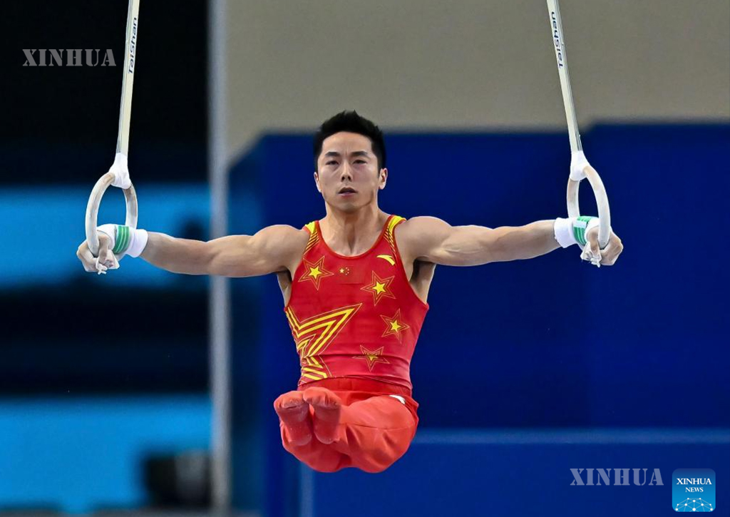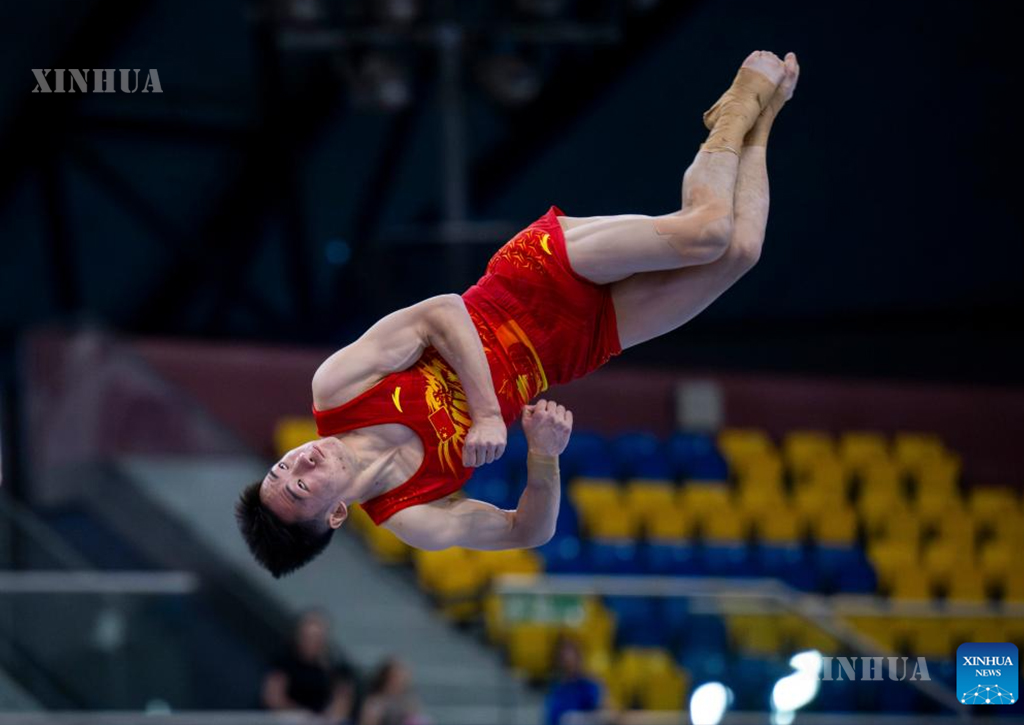 You Hao of China competes during the 17th Artistic Gymnastics Apparatus World Cup in Doha, Qatar, April 16, 2025. (Photo by Nikku/Xinhua)