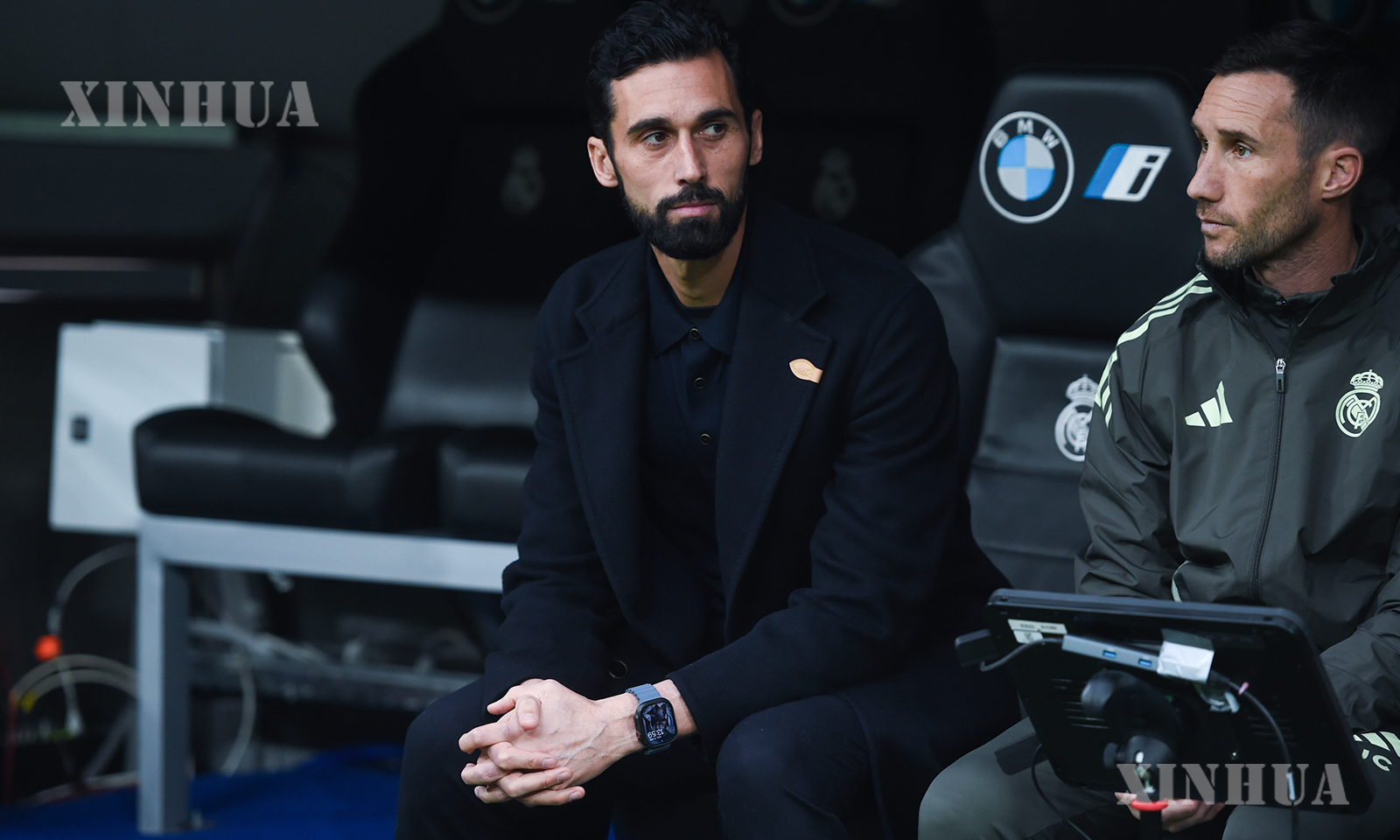 Real Madrid’s manager Alvaro Arbeloa (L) is seen before the La Liga football match between Real Madrid and Levante UD in Madrid, Spain, on Jan. 17, 2026. (Photo by Gustavo Valiente/Xinhua)