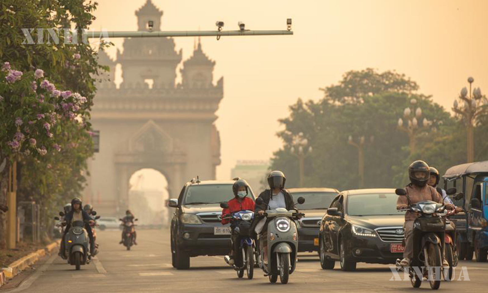 Photo 1, 2: This photo taken on April 7, 2026 shows the view of a street in Vientiane, capital of Laos. (Photo by Kaikeo Saiyasane/Xinhua)