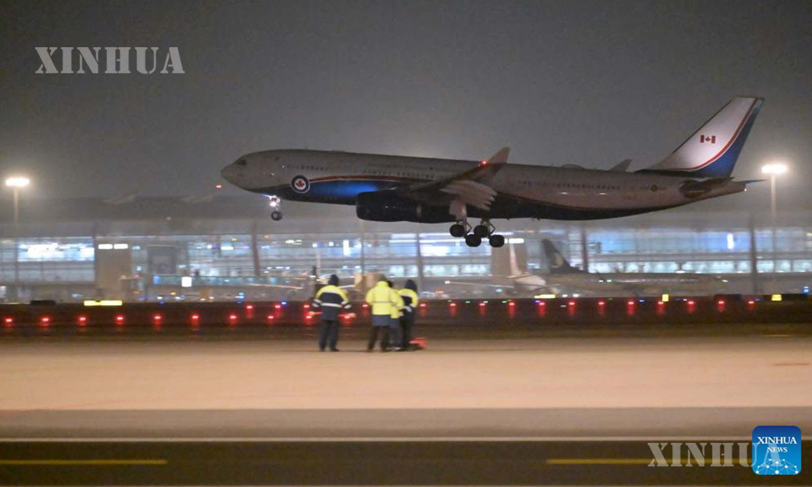 The plane carrying Canadian Prime Minister Mark Carney arrives in Beijing, capital of China, Jan. 14, 2026. (Xinhua/Cai Yang)