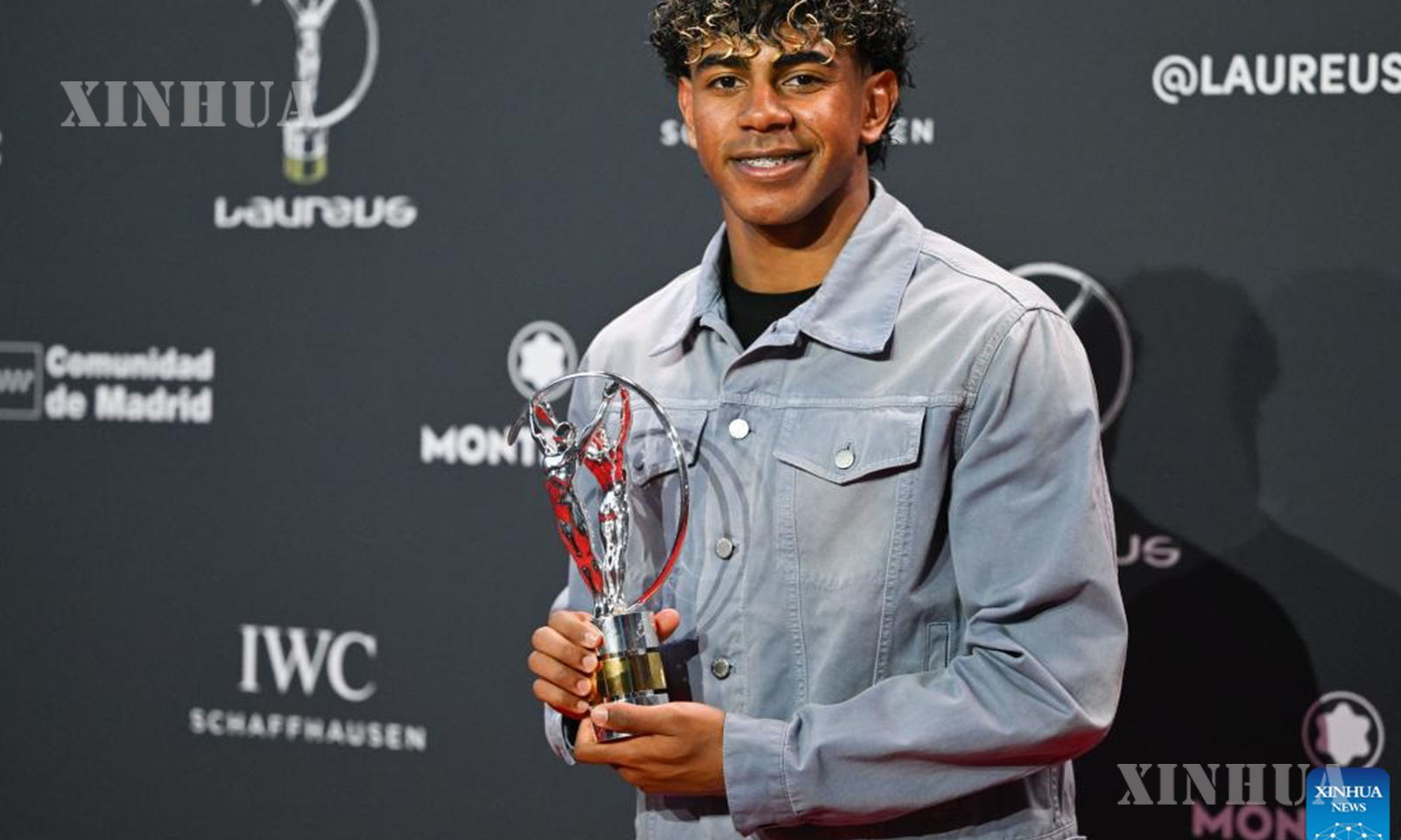 စပိန်နိုင်ငံ မက်ဒရစ်မြို့တွင် ကျင်းပသည့် ၂၀၂၆ ခုနှစ် Laureus World Sports ဆုပေးပွဲအခမ်းအနား၌ တစ်နှစ်တာအကောင်းဆုံး လူငယ်ကစားသမားဆုနှင့်အတူ အမှတ်တရဓာတ်ပုံရိုက်နေသည့် လာမင်း ယမားလ်အား ၂၀၂၆ ခုနှစ် ဧပြီ ၂၀ ရက်က တွေ့ရစဉ် (ဆင်ဟွာ)