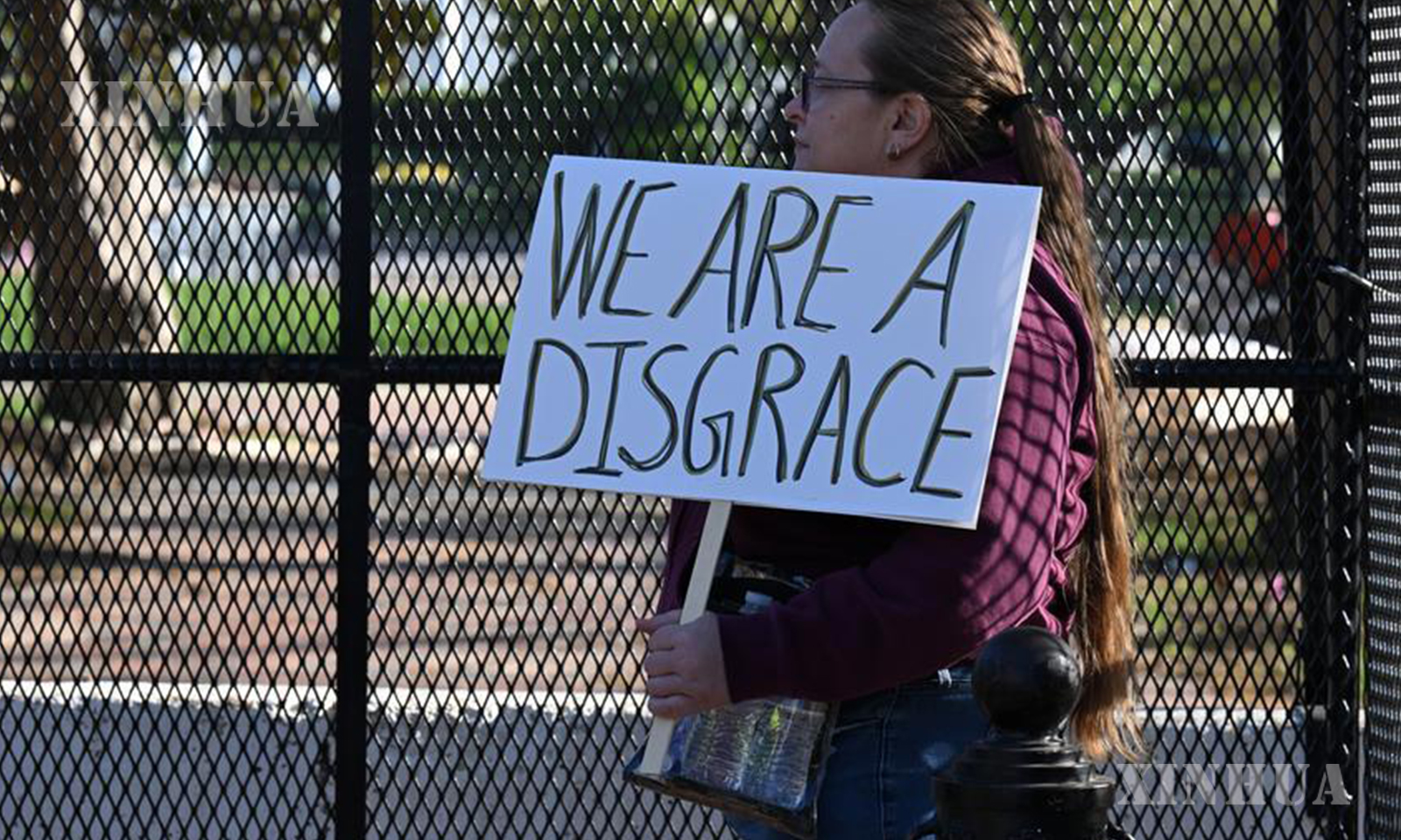 Photo: A demonstrator holds a placard in front of the White House in Washington, D.C., the United States, on April 7, 2026. (Xinhua/Li Rui)