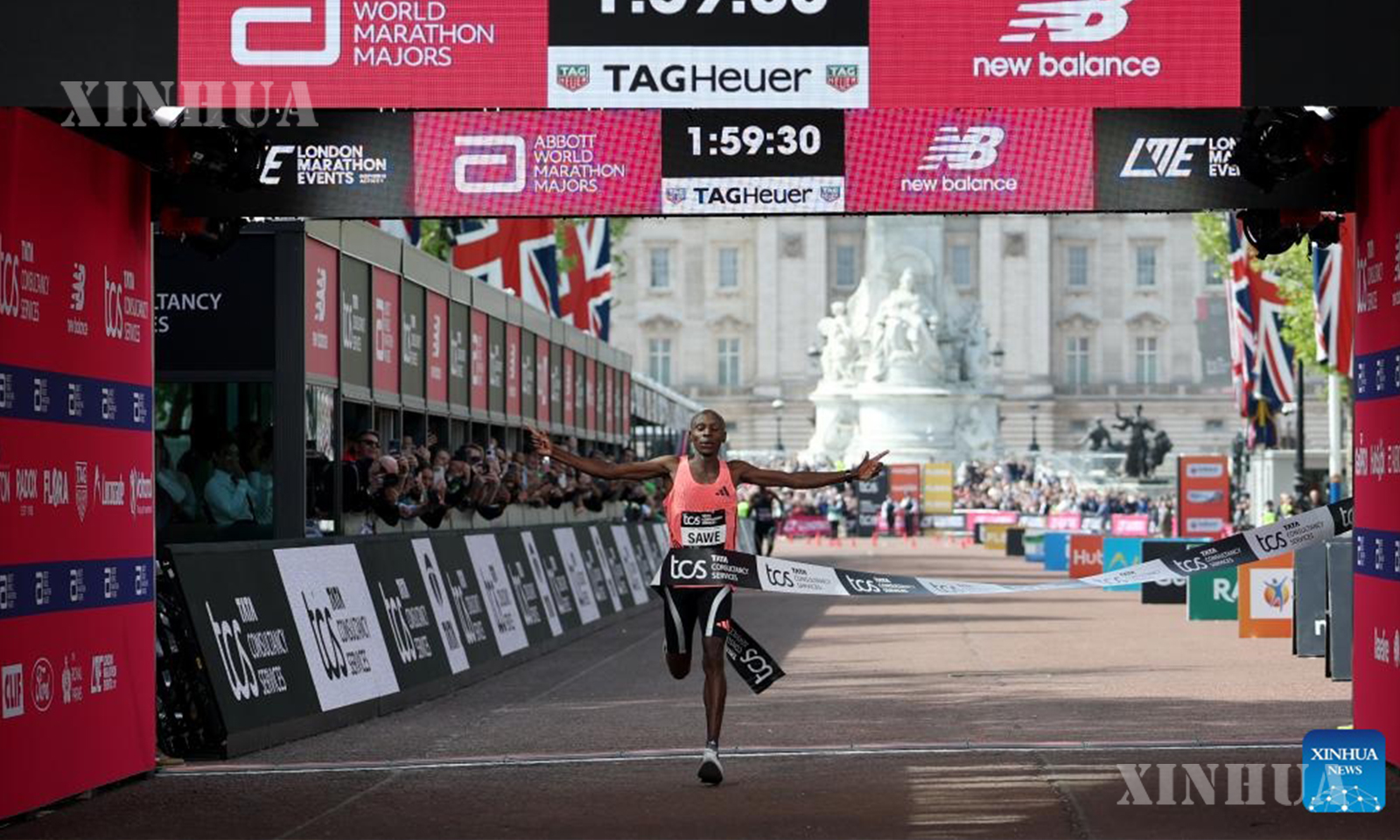 LONDON, April 26 (Xinhua) — Kenya’s Sabastian Sawe became the first man in history to run a marathon in under two hours, doing so at the 2026 London Marathon in a winning time of one hour, 59 minutes and 30 seconds.