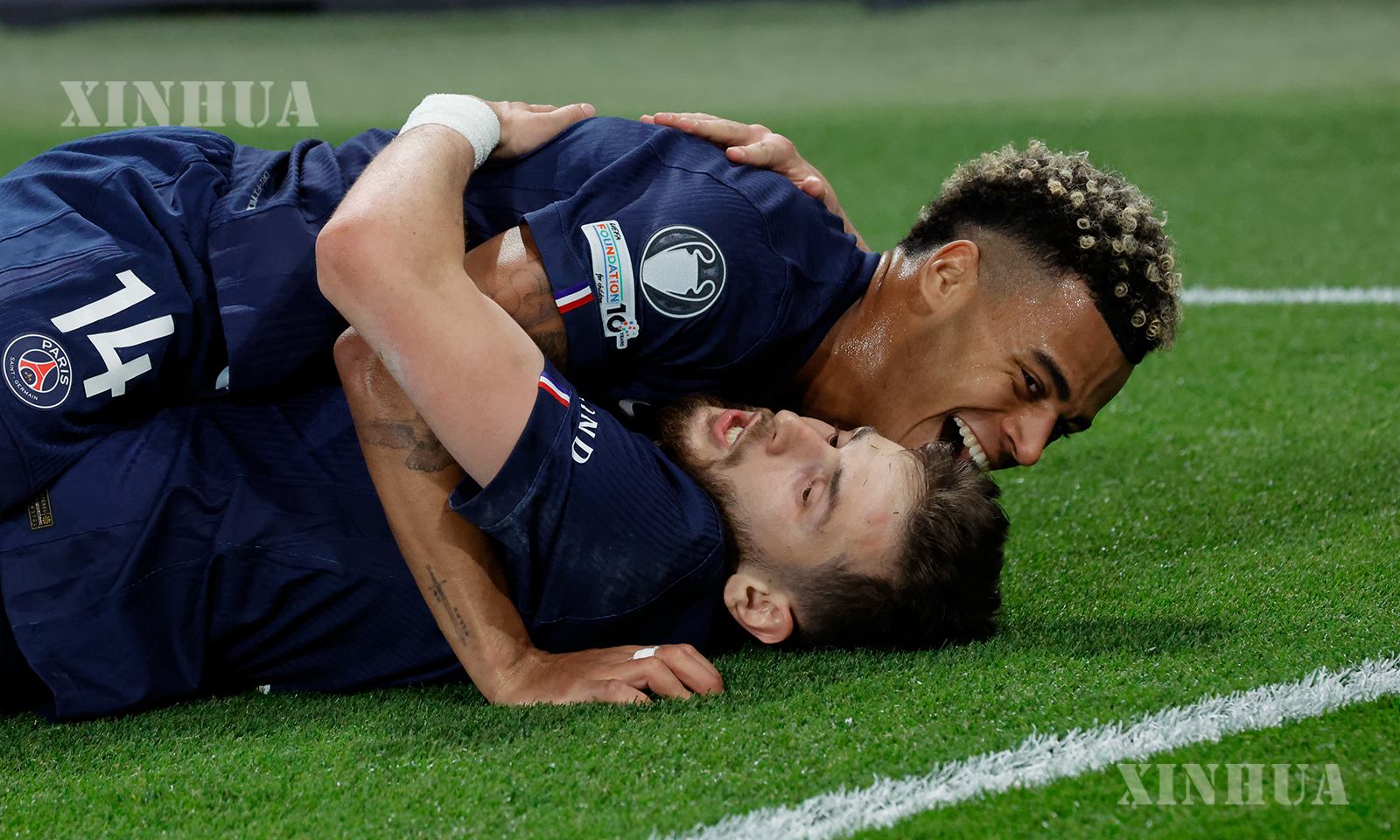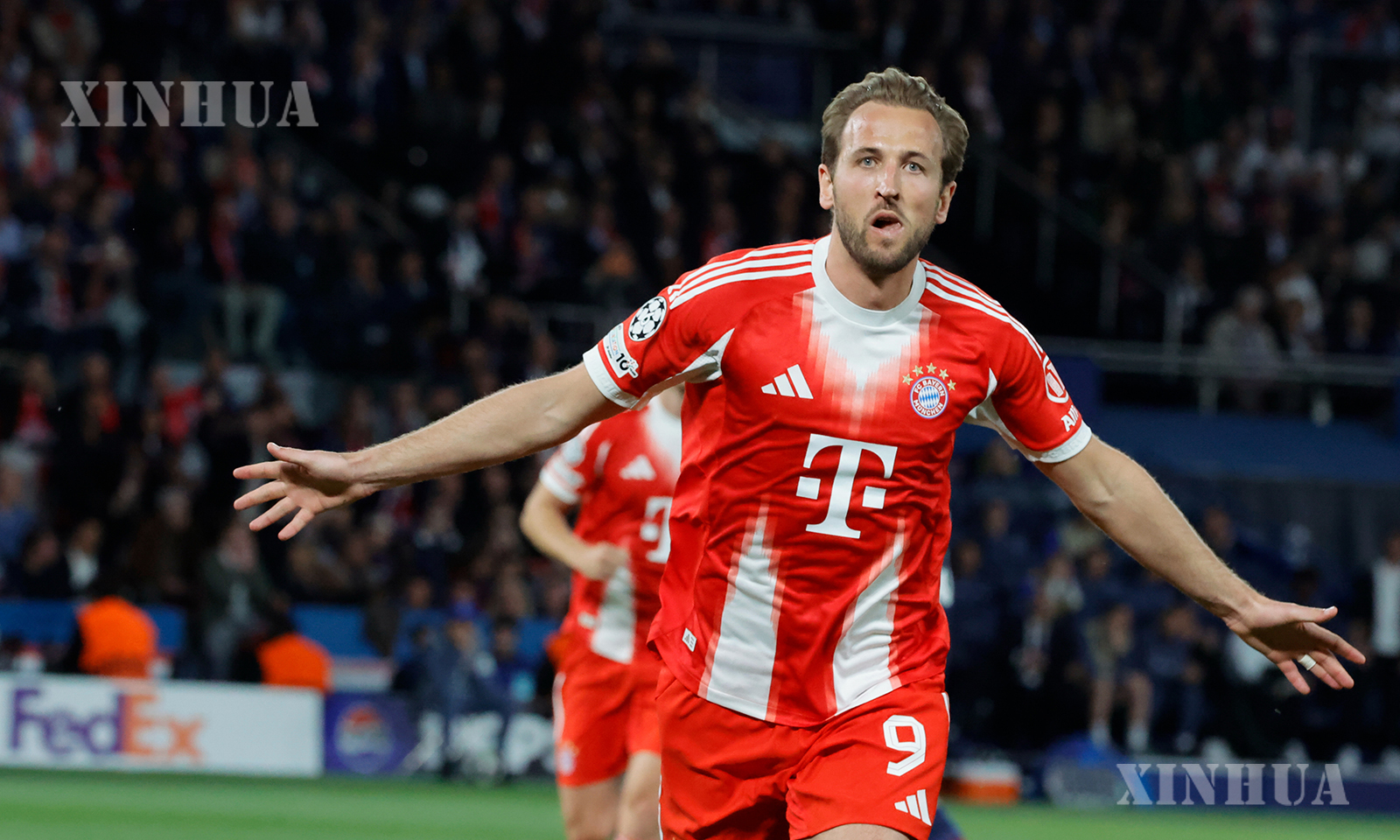 ပြင်သစ်နိုင်ငံ ပဲရစ်မြို့ရှိ ပါ့ခ် ဒီပရင့်စ် အားကစားကွင်း၌ ၂၀၂၆ ခုနှစ် ဧပြီ ၂၈ ရက်က ပီအက်စ်ဂျီနှင့် ဘိုင်ယန်မြူးနစ်အသင်းတို့ ယှဉ်ပြိုင်ကစားသည့် ယူအီးအက်ဖ်အေ ချန်ပီယံလိဂ် ဆီမီးဖိုင်နယ် ပထမအကျော့ပွဲစဉ်၌ ဘိုင်ယန်မြူးနစ်အသင်းမှ ဟယ်ရီကိန်း ဂိုးသွင်းပြီးနောက် အောင်ပွဲခံနေစဉ် (ဆင်ဟွာ)