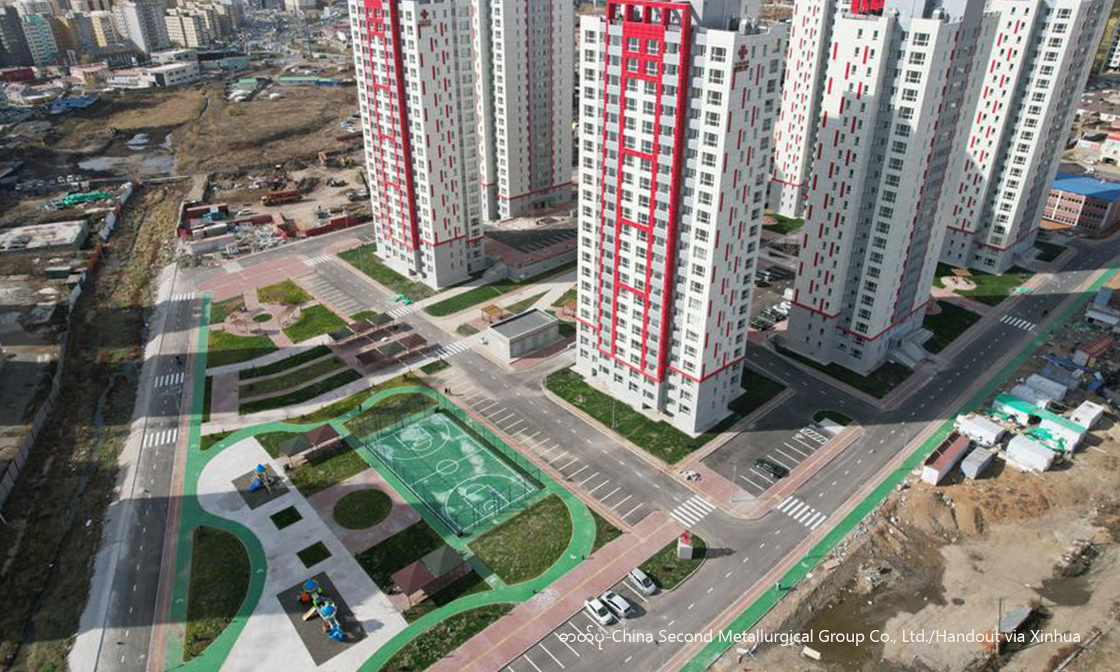 An aerial drone photo taken on Oct. 2, 2025 shows the Green Lake 1,008 Housing Units Project in Ulan Bator, Mongolia. (China Second Metallurgical Group Co., Ltd./Handout via Xinhua)
