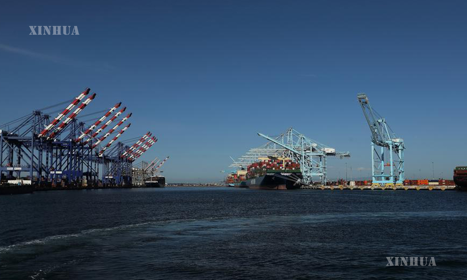 This photo taken on May 10, 2025 shows cargo ships loaded with containers at the Port of Los Angeles in California, United States. (Photo by Qiu Chen/Xinhua)