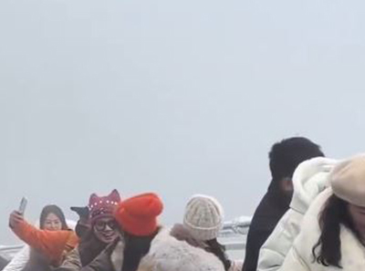 တရုတ်နိုင်ငံ အရှေ့ပိုင်းရှိ ဆီးနှင်းဖုံးလွှမ်းနေသော တောင်ကုန်းပေါ်သို့ စက်လှေကားဖြင့် တက်ရောက်ခြင်း