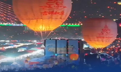ယူနန်ပြည်နယ် ရှစ်ဆောင်ပဏ္ဏားသင်္ကြန်ပွဲတော်တွင် မီးပုံးပျံပေါင်းသောင်းနှင့်ချီက ကြယ်တာရာများပမာ ကောင်းကင်ယံအား လင်းလက်စေ